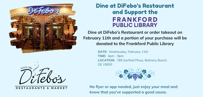 Dine & Donate at DiFebo's Restaurant - February 11th 4pm to 9pm